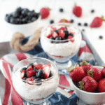 This No Bake Berry Cheesecake Parfait is a quick and easy dessert that’s perfect for the 4th of July! Enjoy layers of graham cracker crumble, creamy cheesecake filling, and fresh berries bursting with fruity flavor! This red, white, and blue treat is irresistible!