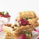 These Strawberry Waffles with chocolate chips are such an easy breakfast option! And, just because they're easy, doesn't mean they aren't special — and delicious. Serve these at your next brunch, on a leisurely weekend morning, or for breakfast in bed!